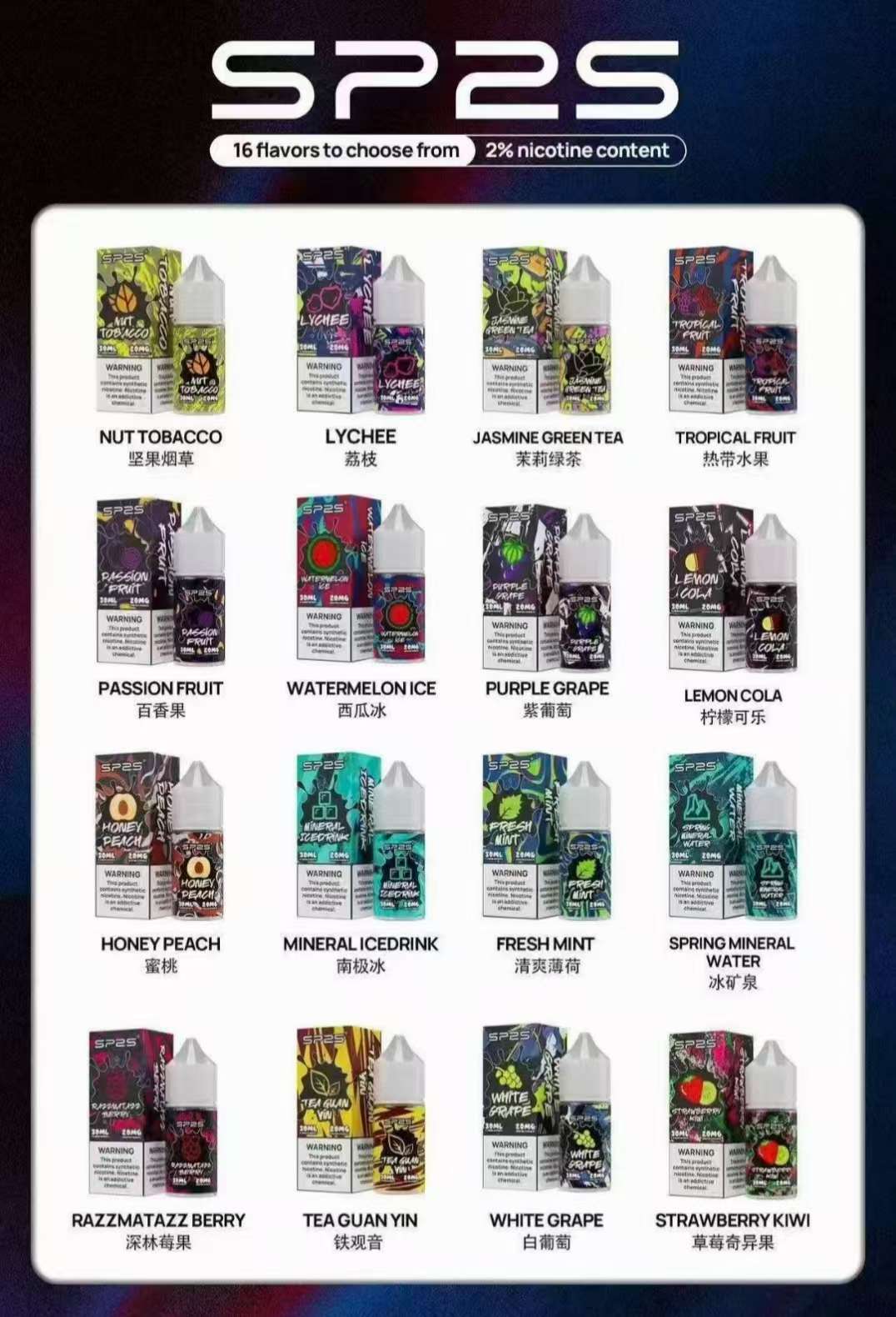 SP2S思博瑞瓶裝煙油SP2S思博瑞煙油30ML | 20MG尼古丁鹽 | 16種口味可選 | SP2S瓶裝油